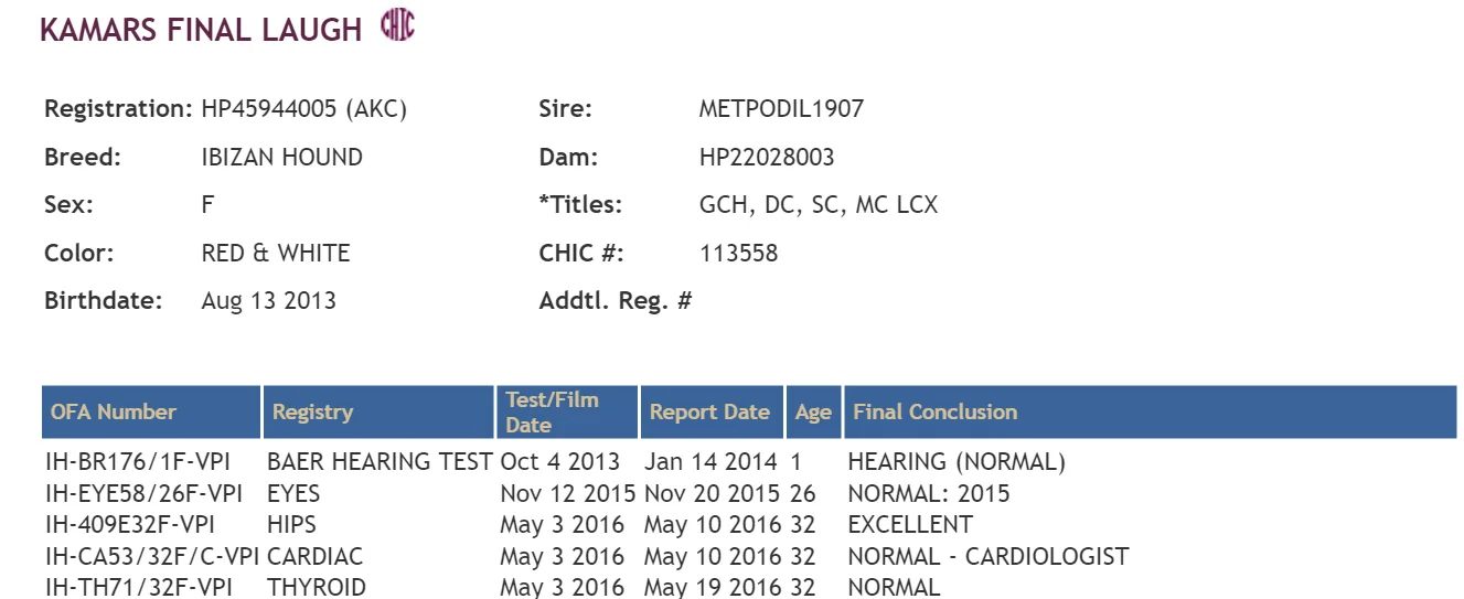 AKC Lure Coursing Top 10 Ibizan: #3 in 2015, #1 2016, #3 2017, #6 2018, #7 2019
